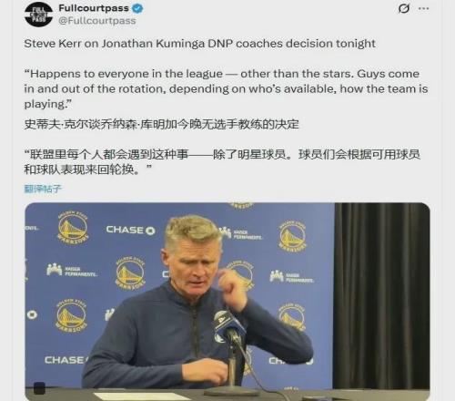 賽后,勇士主帥科爾談到了為何DNP庫明加,表示這就是NBA的運(yùn)作方式,總會有人努力搶你的工作。