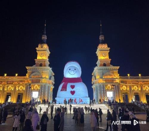 位于哈爾濱音樂長廊的網(wǎng)紅雪人。