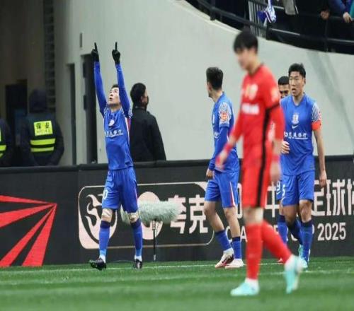今年2月7日,上海申花隊(duì)球員于漢超(左)在進(jìn)球后慶祝。圖片來(lái)自上海申花足球俱樂部官方微博