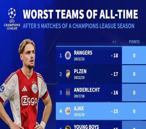北京時(shí)間11月26日,在歐冠聯(lián)賽階段第5輪的比賽中,阿賈克斯主場(chǎng)0-2不敵本菲卡,目前5戰(zhàn)全敗僅進(jìn)1球丟16球排名墊底...