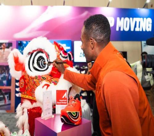 現(xiàn)場,傳奇跑者凱內(nèi)尼薩·貝克勒驚喜現(xiàn)身安踏展區(qū)并為醒獅「點睛」,相關(guān)圖文視頻在展會現(xiàn)場引起熱議。