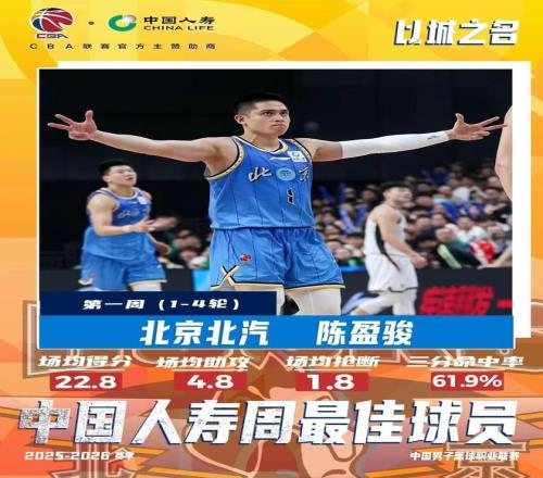 在陳盈駿的出色發(fā)揮下,北京北汽也憑借開局的四連勝高居聯(lián)賽積分榜首。